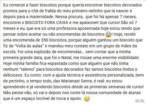 E foi vivendo isso na prática que criamos o Biscoitos Fora da Caixa. Então, se você não apenas quer fazer parte do mundo dos biscoitos, mas também ter sucesso na sua jornada vem com a gente.